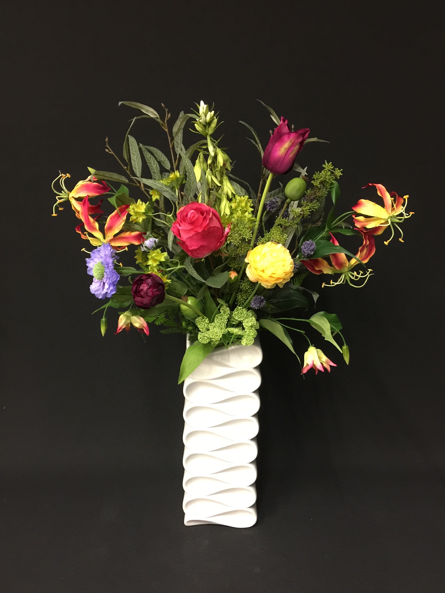 TIP: Maak een foto waar de vaas komt te staan dan kan ik je advies gegeven wat betreft creatie en kleur.