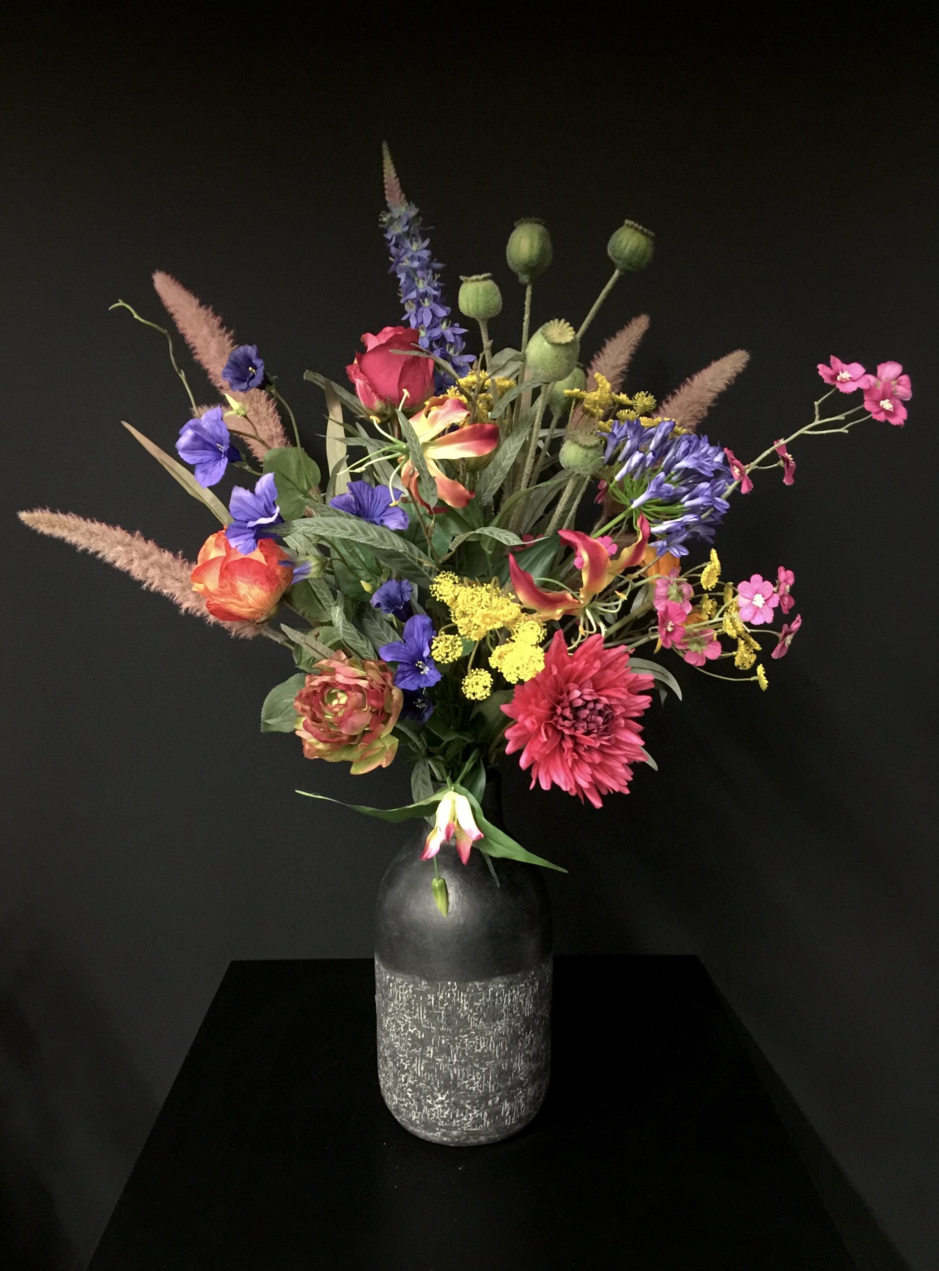 Bij ons worden zijden boeketten op maat gemaakt. Laat je inspireren door verschillende kleurrijke bloemen en vormen die per stuk aangeboden worden en dan gaan we samen een boeket maken. Een boeket dat past in jouw interieur, het is ook mogelijk om zelf je mooiste vaas mee te nemen.
